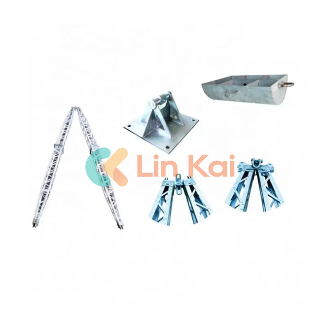 Нингбо Лингкаи Мануфацтуре алуминијумске легуре А-облика за џин на залихама се склапају и постављају у конструкцији преноса и дистрибуције. Има две врсте опција за главу: „спојни стил“ и „фиксни стил“. Велепродајни стуб за џин у облику слова А је направљен од легуре алуминијума високе чврстоће као главног материјала, а челични делови су поцинковани. Фактор сигурности је 3.0.